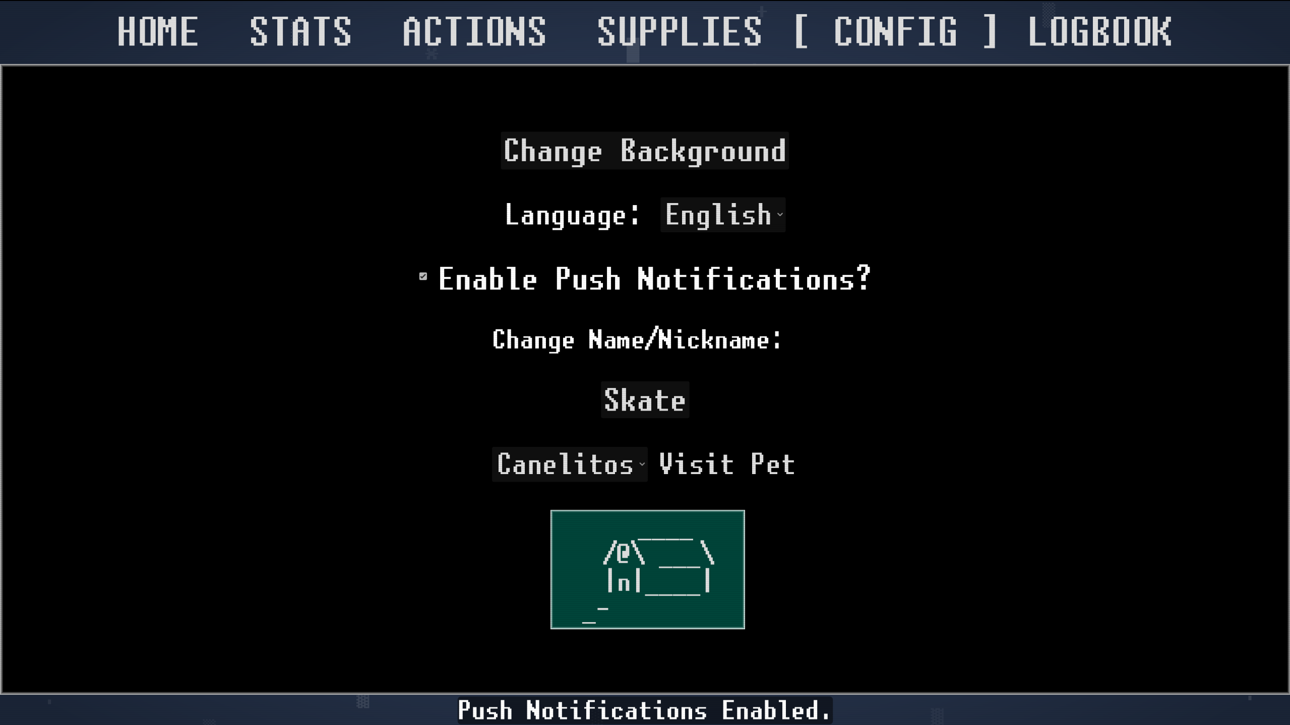 - Language: The game's default language is Spanish. After adopting your first pet, you can navigate to the "Ajustes" tab to change the language to English from the drop-down menu.